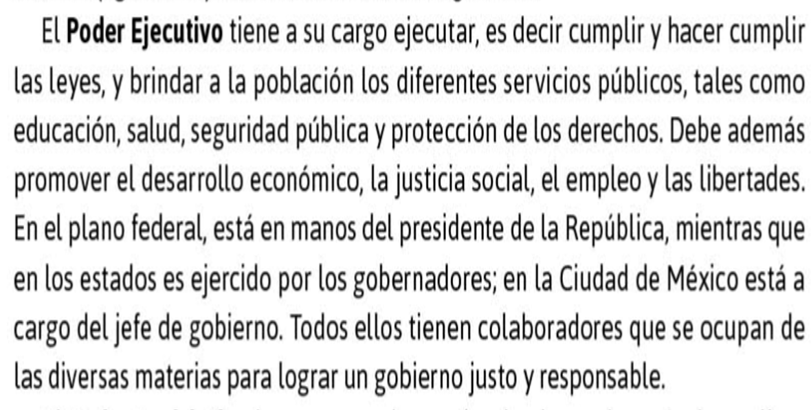 Lee con atención el siguiente texto y con la información leída realiza un esquema, cuadro sinóptico o mapa conceptual coloca como titulo "Equilibrio de poderes en México"