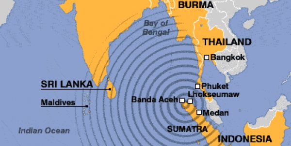 Imagen: Extensión de la onda sísmica del maremoto del 26 de diciembre de 2004 en Indonesia y el sureste asiático.