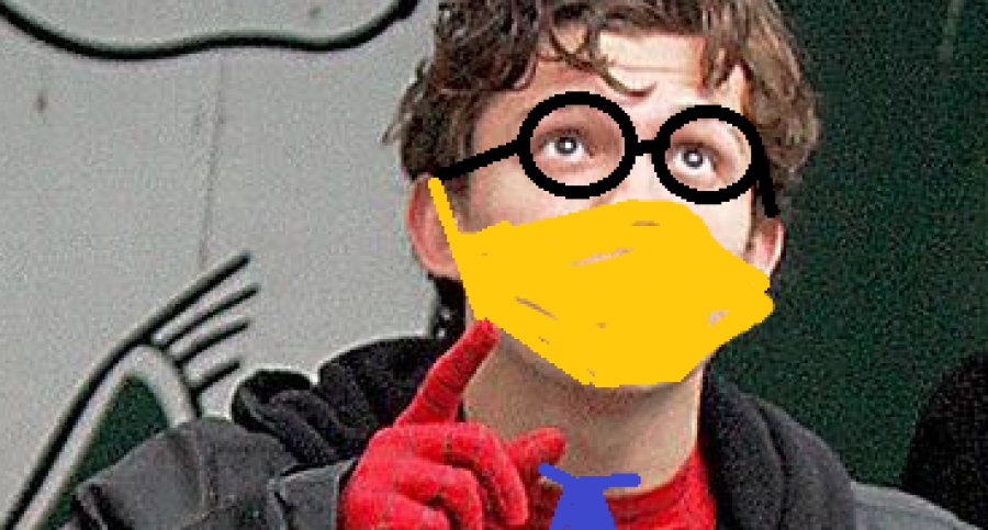 Look at the following image and identify the clothes that Peter Parker is wearing, as well as the colors of SAID clothes. Mira la siguiente imagen e identifica la ropa que Peter Parker lleva puesta, así como los colores de DICHA ropa.