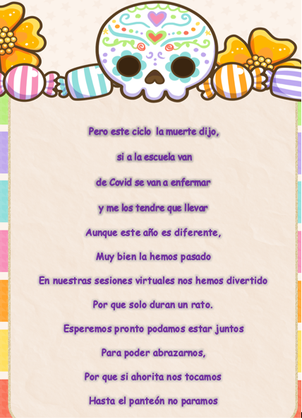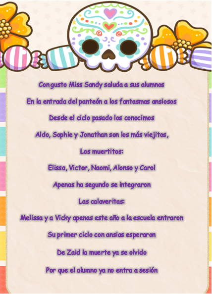 Además recuerda me puedes mandar tu fotografía de la hojaldra y la calaverita que realizamos con plastilina con tu disfraz, a mi whatsapp para que las compartamos en el facebook de la escuela: Liceo del Sur.Puebla