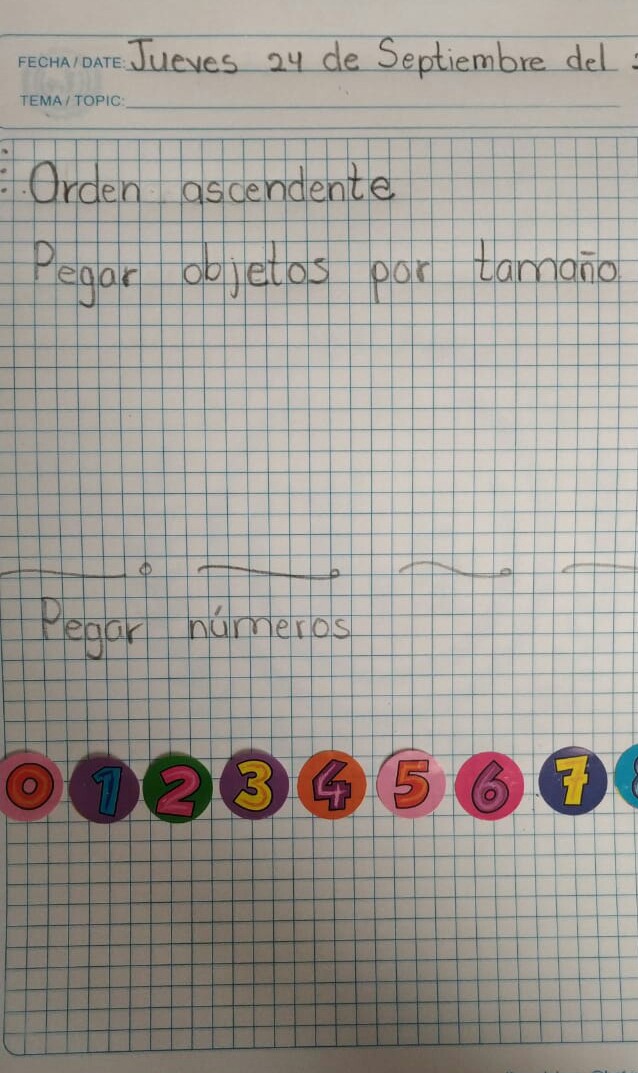 En tu cuaderno de de matemáticas etiqueta verde, tienes que tener 5 recortes de objetos de diferentes tamaños, debes de pagarlos en tu cuaderno de manera ascendente.