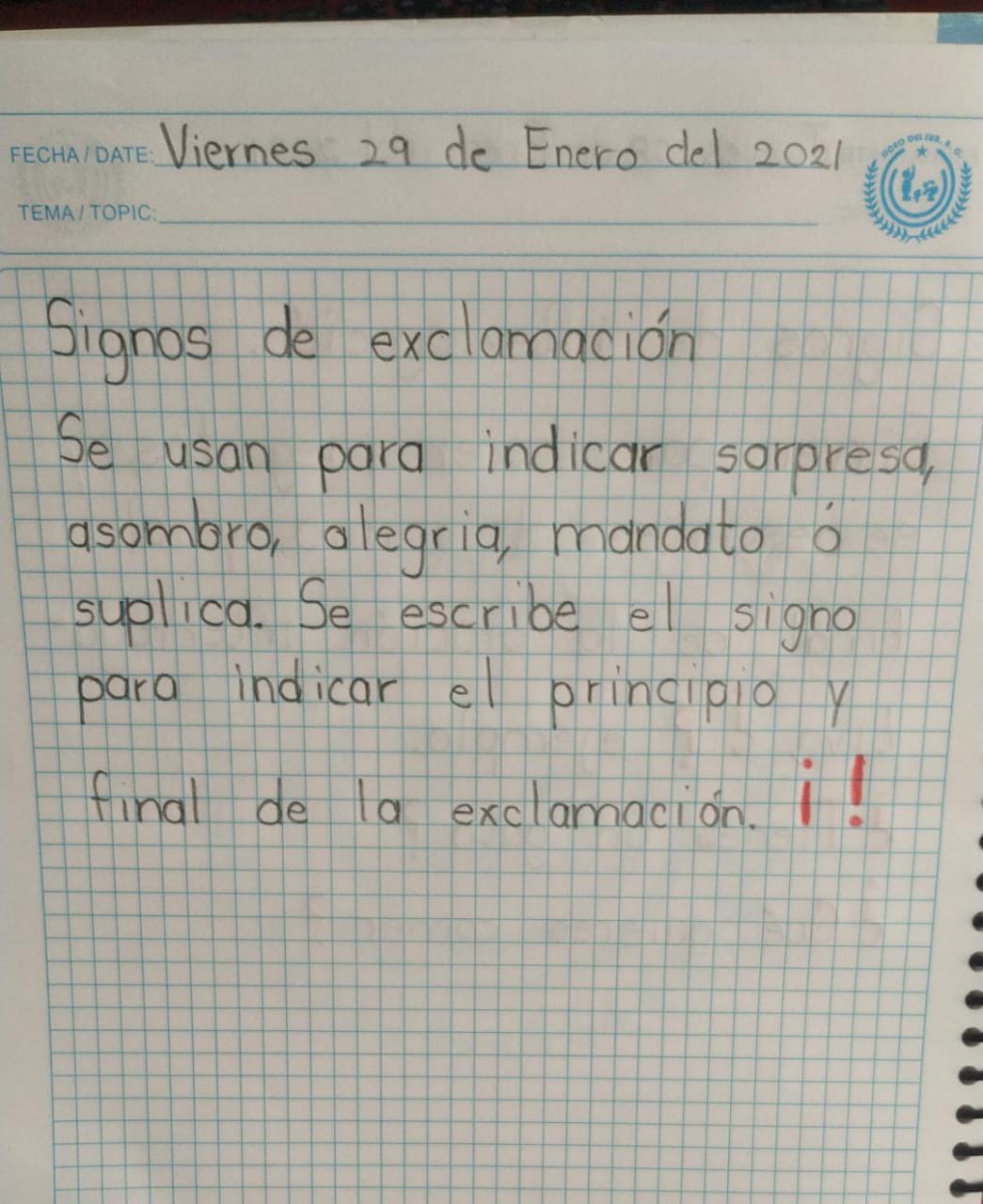 Una vez copiado el tema escribe 4 oraciones exclamativas usando los signos.