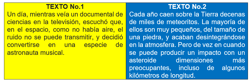 Actividad 1. Lee con atención los textos 1 y 2 y, después reporta en tu libreta de español (etiqueta azul), al que pertenezca a un texto de divulgación científica.