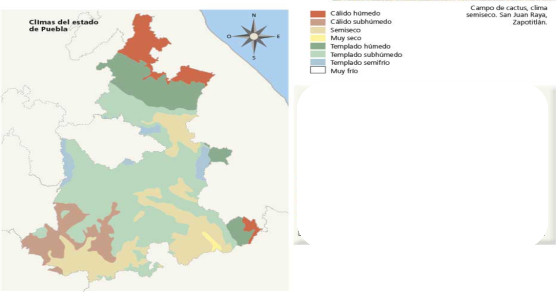 Los tipos de climas presentes en Puebla se agrupan según su temperatura en cálidos, templados y fríos, en cuanto a la humedad el ambiente de cada zona puede ser húmedo, subhúmedo, semiseco o seco.