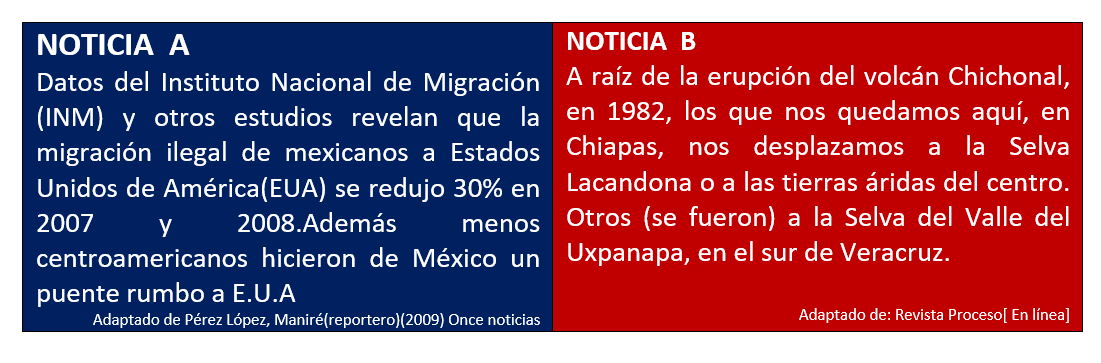 C) Lee con atención las noticias A y B y después escribe en tu libreta de Geografía (etiqueta roja) que tipo de migración refieren cada una.