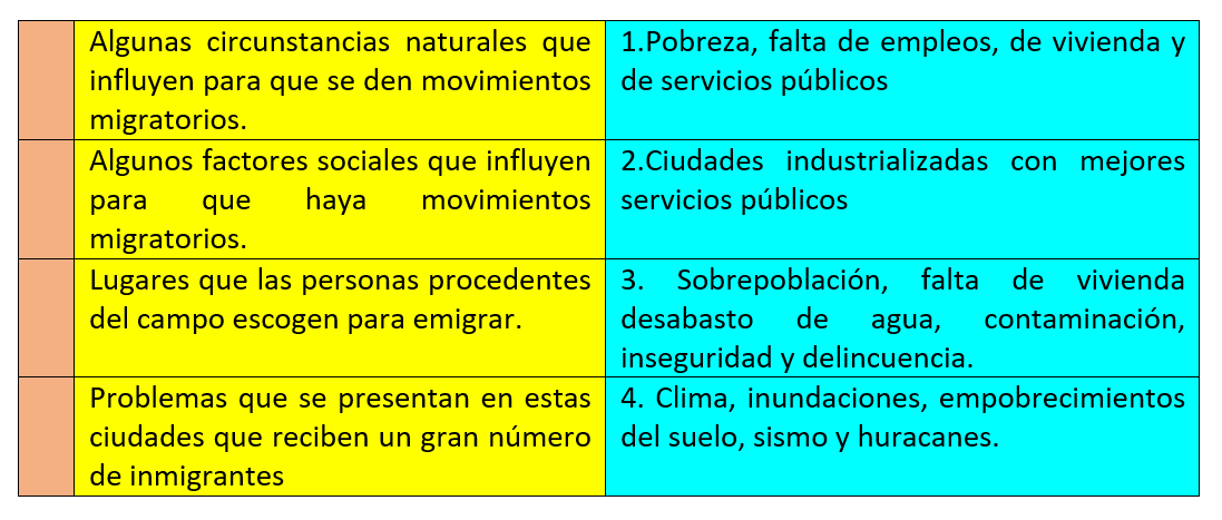 B) Copia el siguiente cuadro en tu libreta de Geografía (etiqueta roja) y escribe en los recuadros de la izquierda los números de la derecha, según corresponda.