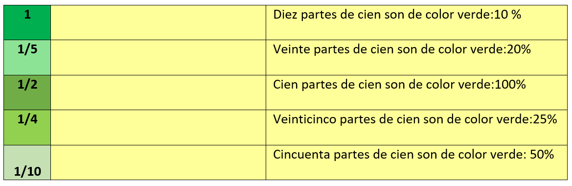 Las siguientes fracciones corresponden a los porcentajes: