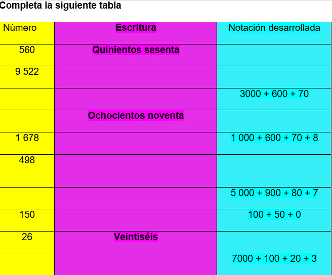 Actividad: Observa con atención los videos y después copia la tabla y los siguientes problemas en la libreta de matemáticas (etiqueta verde) y completa y resuélvelos respectivamente. Por otro lado, no olvides seguir identificando con color rojo la frese interrogativa, con azul los sustantivos comunes y con amarillo los sustantivos propios en el texto del problema.