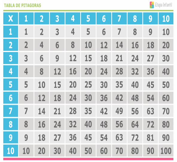 Así mismo, reproduce en material reutilizable la tabla de Pitágoras, para utilizarla en la resolución de problemas, los cuales involucren la multiplicación y la división.