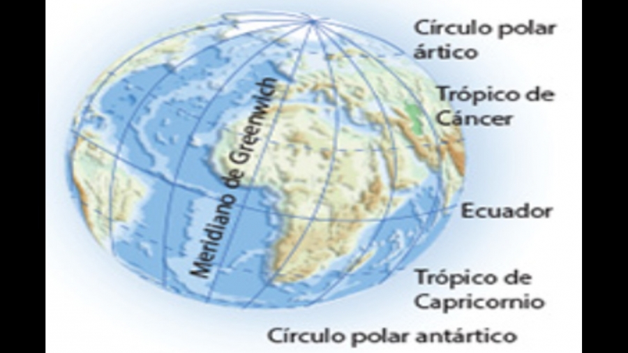 Para localizar lugares en la superficie terrestre se utilizan como referencia círculos imaginarios: unos rodean el planeta y se trazan paralelos al ecuador, los otros pasan por los polos. Nuestro planeta se ha dividido en círculos y semicírculos imaginarios llamados paralelos y meridianos, los cuales forman una red geográfica de referencia. Los paralelos son líneas horizontales que rodean completamente a la Tierra, formando círculos. El ecuador es el mayor de los paralelos y divide a nuestro planeta en dos hemisferios: norte y sur. Los principales paralelos en el hemisferio norte son el trópico de Cáncer y el círculo polar ártico; y en el hemisferio sur son el trópico de Capricornio y el círculo polar antártico. Los meridianos son líneas trazadas del polo norte al polo sur y forman semicírculos. El meridiano de Greenwich es el principal y divide a la Tierra en los hemisferios este y oeste.