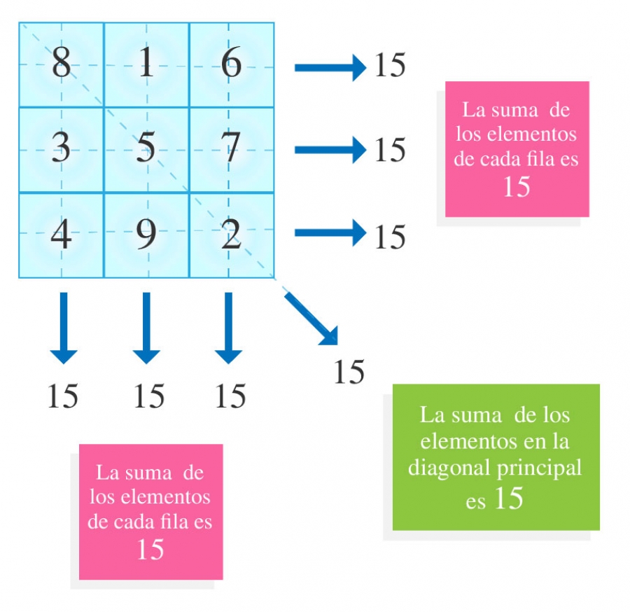 En esta imagen les explica como se resuelve un cuadro mágico ya que de manera, horizontal, vertical y diagonal te tiene que dar como resultado 15 con los número del 1 al 9.